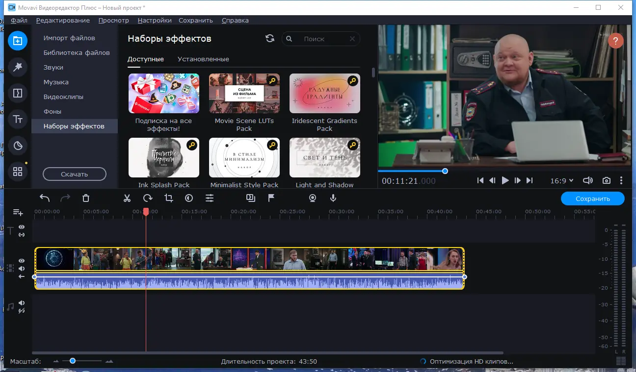 Movavi Video Editor предлагает широкий набор инструментов при относительно низких требованиях к аппаратной части. Это делает его доступным для большинства пользователей, не имеющих мощных компьютеров. Программа быстро запускается, стабильно работает с большинством форматов и не требует длительного изучения. В то же время, отсутствие некоторых продвинутых функций, характерных для профессиональных редакторов, может ограничить возможности при сложном монтаже. Также стоит учитывать, что полная версия требует лицензии, но на русском языке доступна бесплатная версия с базовыми возможностями. Решение подходит для повседневного редактирования, но не для создания киноуровневого контента.
