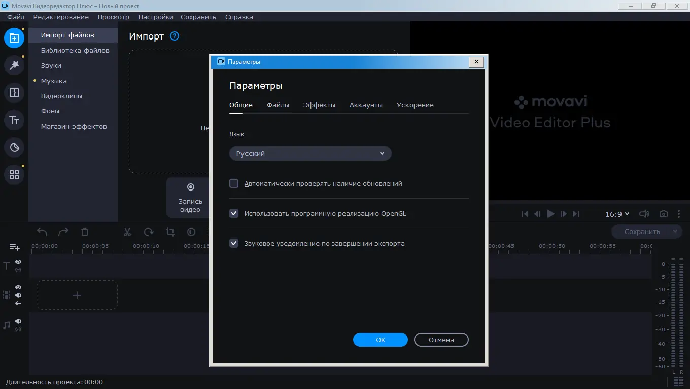 Работа с Movavi Video Editor Plus