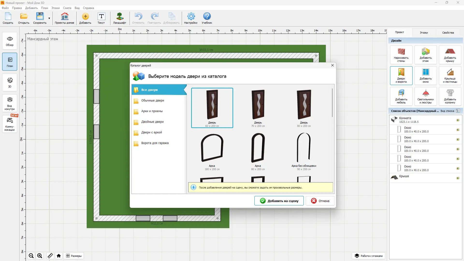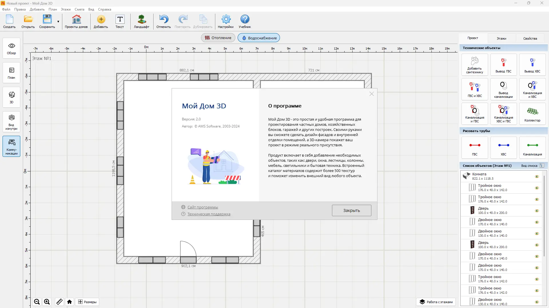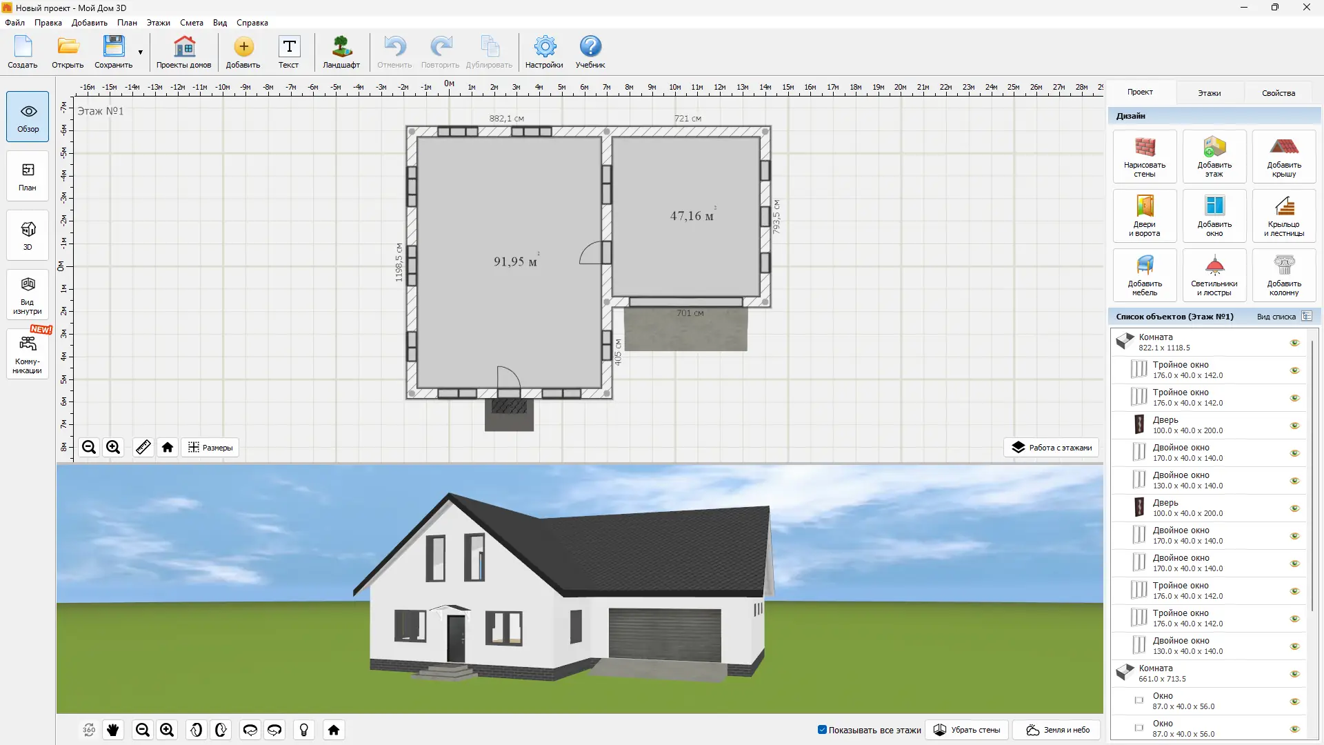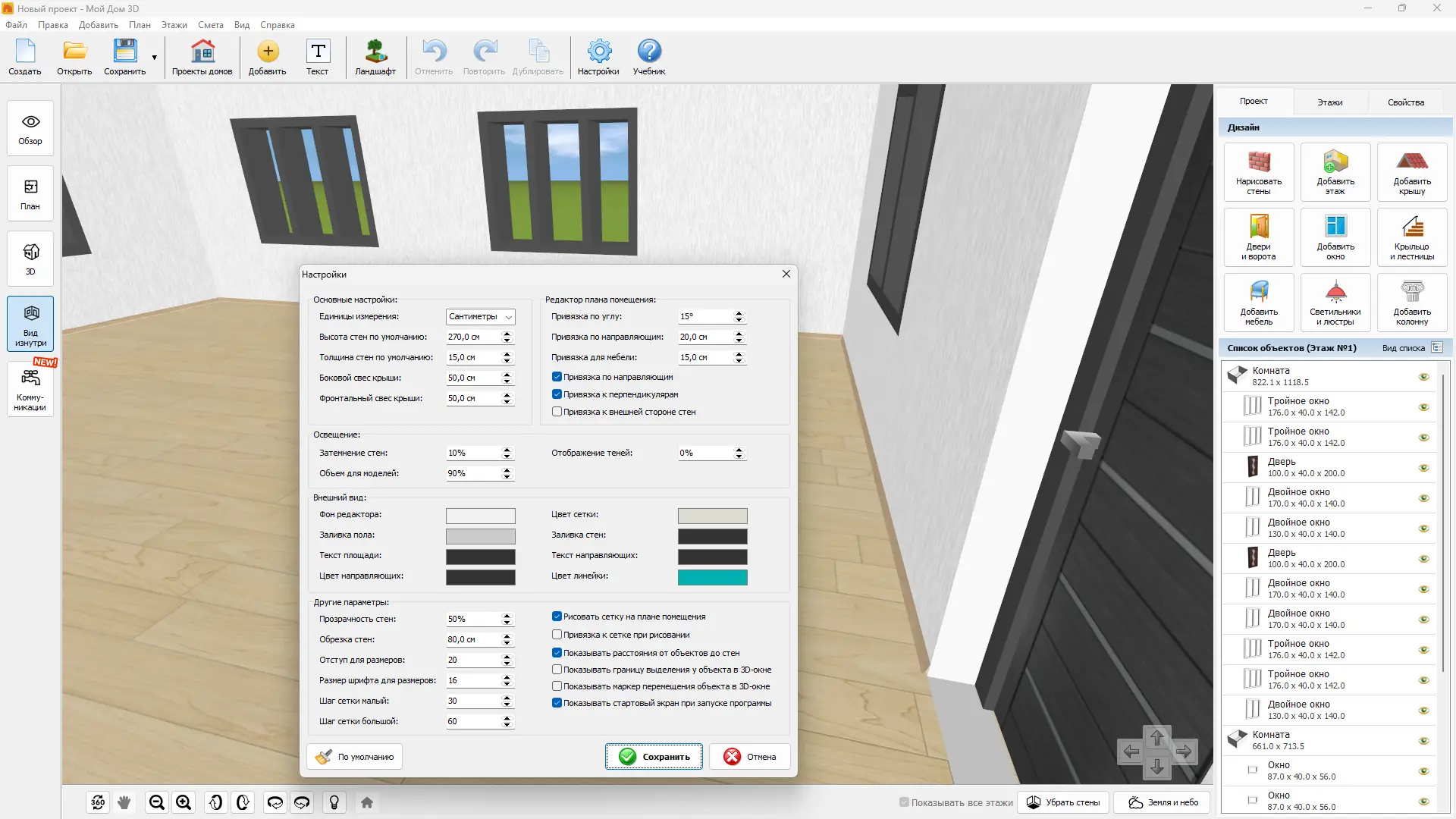 Мой Дом 3D — это программа для проектирования домов, позволяющая создавать детализированные поэтажные планы с возможностью визуализации в 3D. Пользователь может проектировать здания с мансардой и цокольным этажом, настраивать отделку, добавлять мебель и рассчитывать смету. Интерфейс интуитивно понятен, а встроенные подсказки и обучающие материалы помогут быстро освоить функционал.