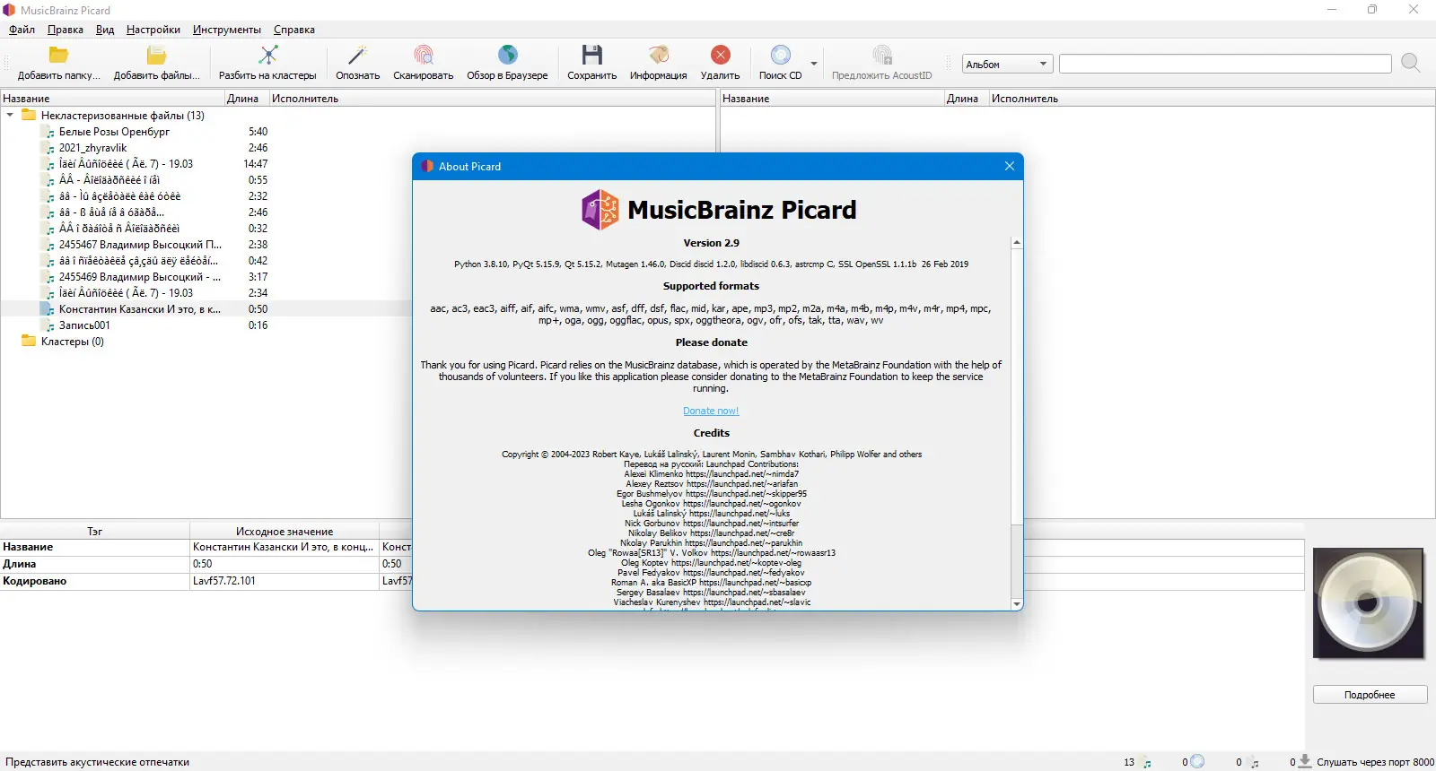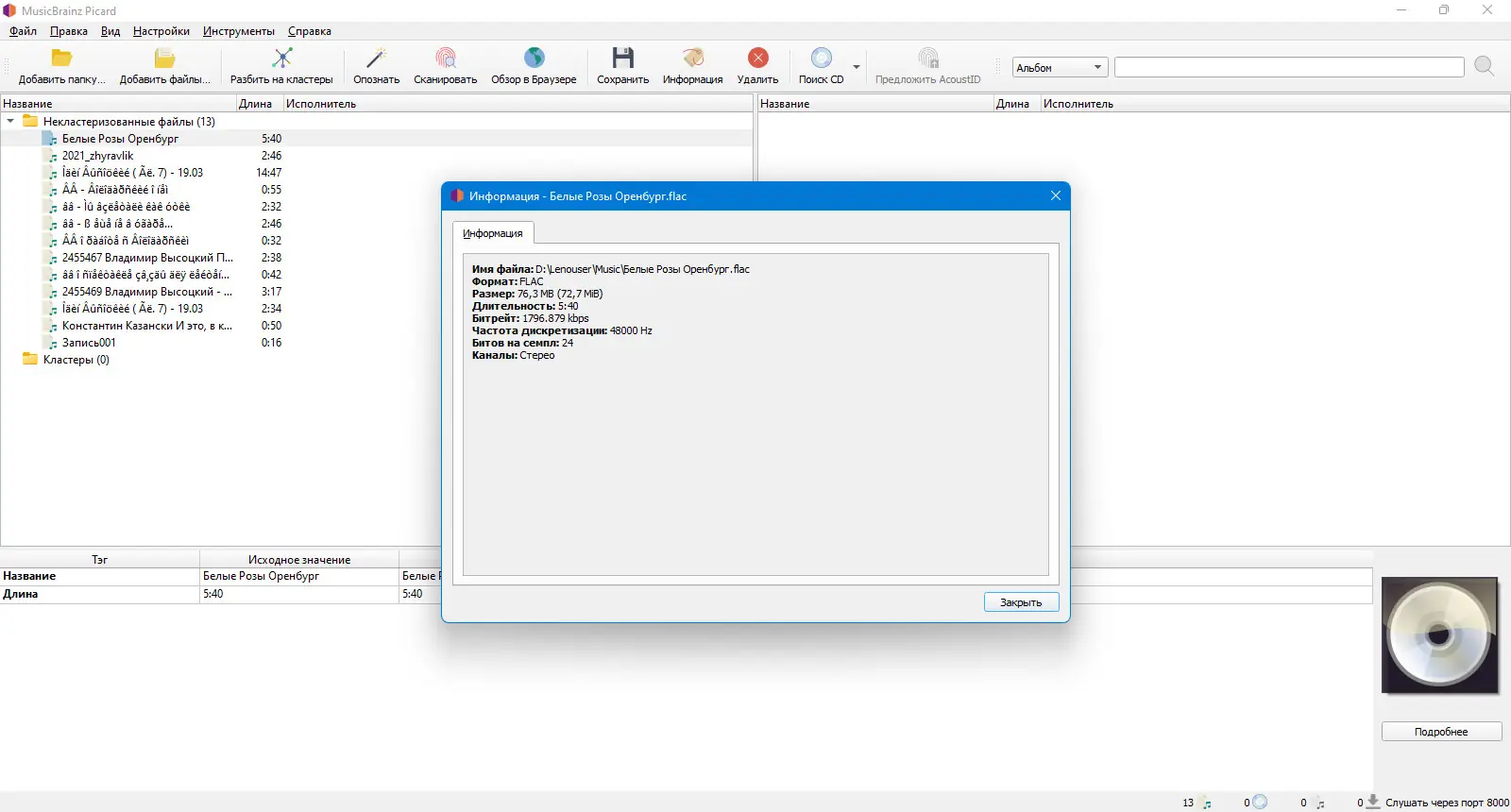Работа с MusicBrainz Picard