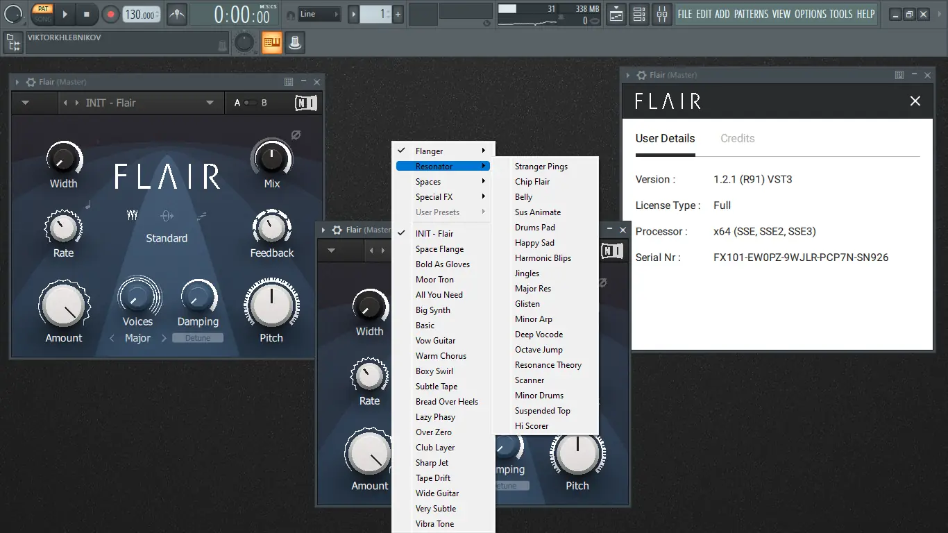 - FLAIR использует не только классическую аналоговую модель фленджера, но и предлагает режим Voices с несколькими линиями задержки для построения гармонически настроенных слоёв.