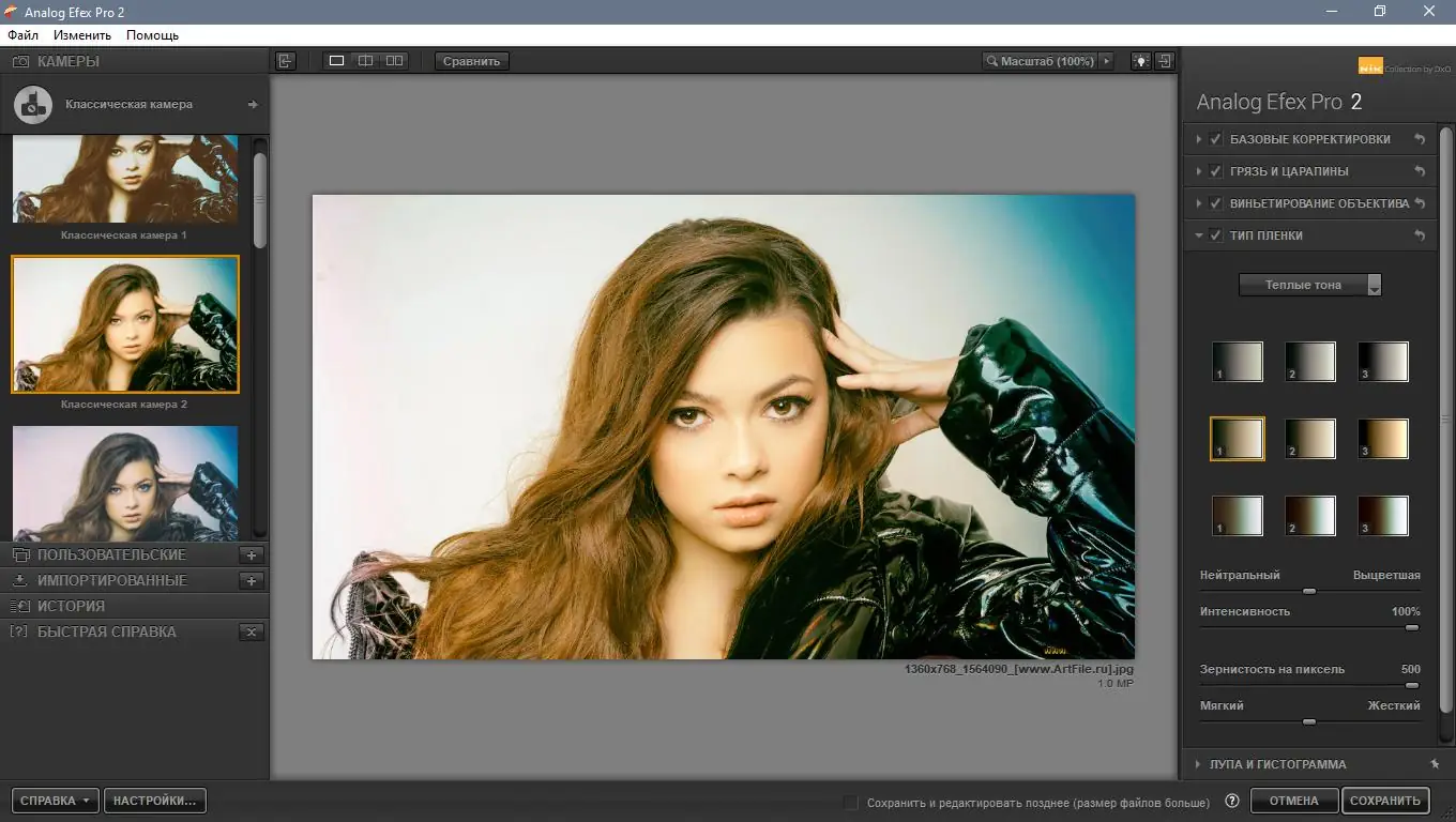 - Реалистичная имитация пленочной зернистости, включая 39 новых текстур, созданных на основе настоящих пленок, а также интеграция технологии ClearView для повышения чёткости.
