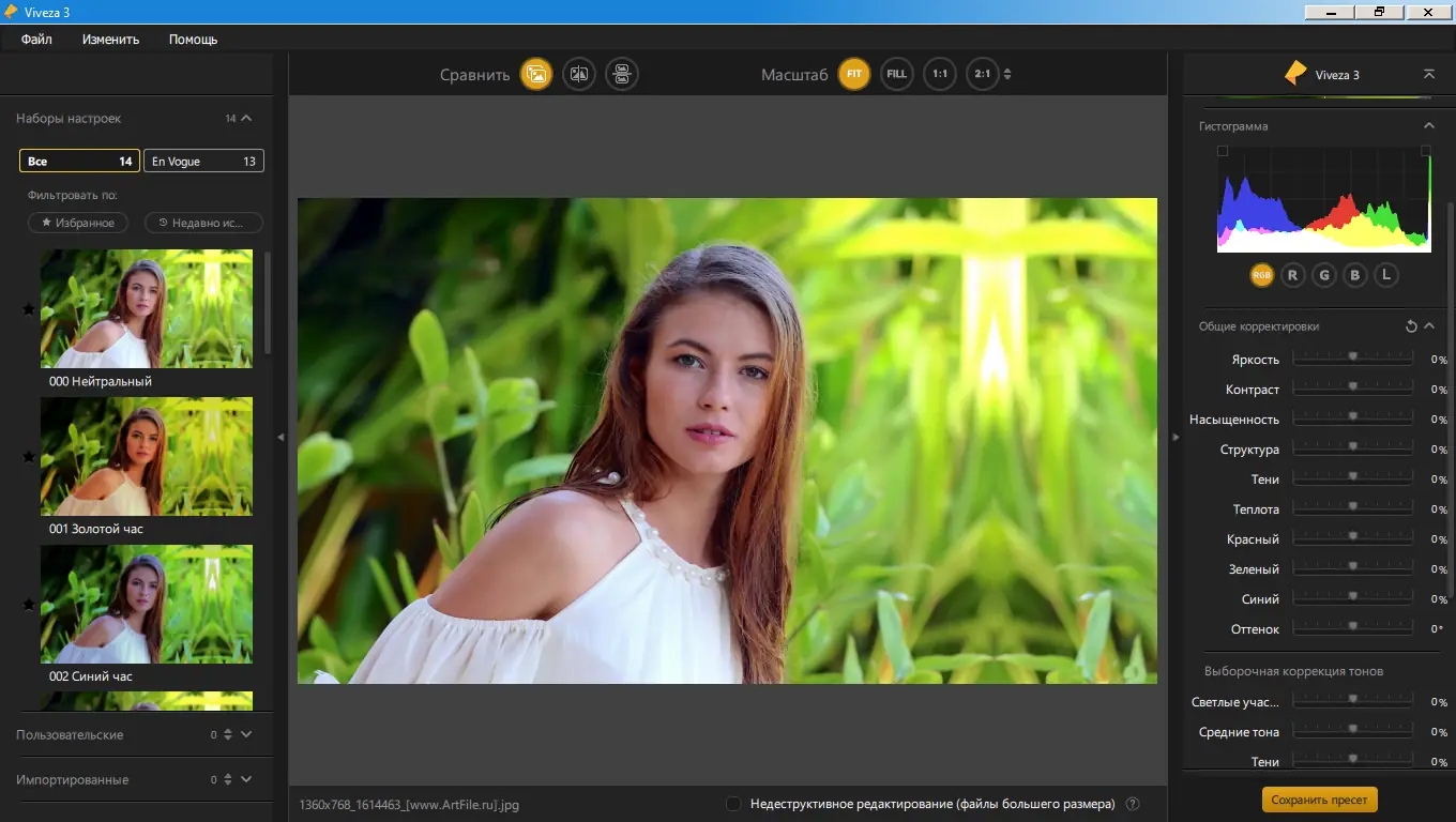 - Гибкие настройки цветового баланса и тоновой кривой в каждом модуле