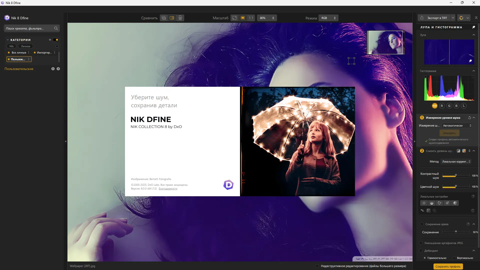 Nik Collection от DxO — это мощный набор плагинов для профессиональной обработки изображений в Adobe Photoshop, Lightroom Classic и DxO PhotoLab. В состав входят семь специализированных инструментов, ориентированных на цветокоррекцию, чёрно-белую ретушь, HDR-склейку и имитацию аналоговой плёнки. Обновлённая версия 8 предлагает улучшенные функции маскирования, интеграцию с photoshop и расширенные настройки тонов и цветов, обеспечивая гибкий и нетривиальный подход к цифровой фотографии.