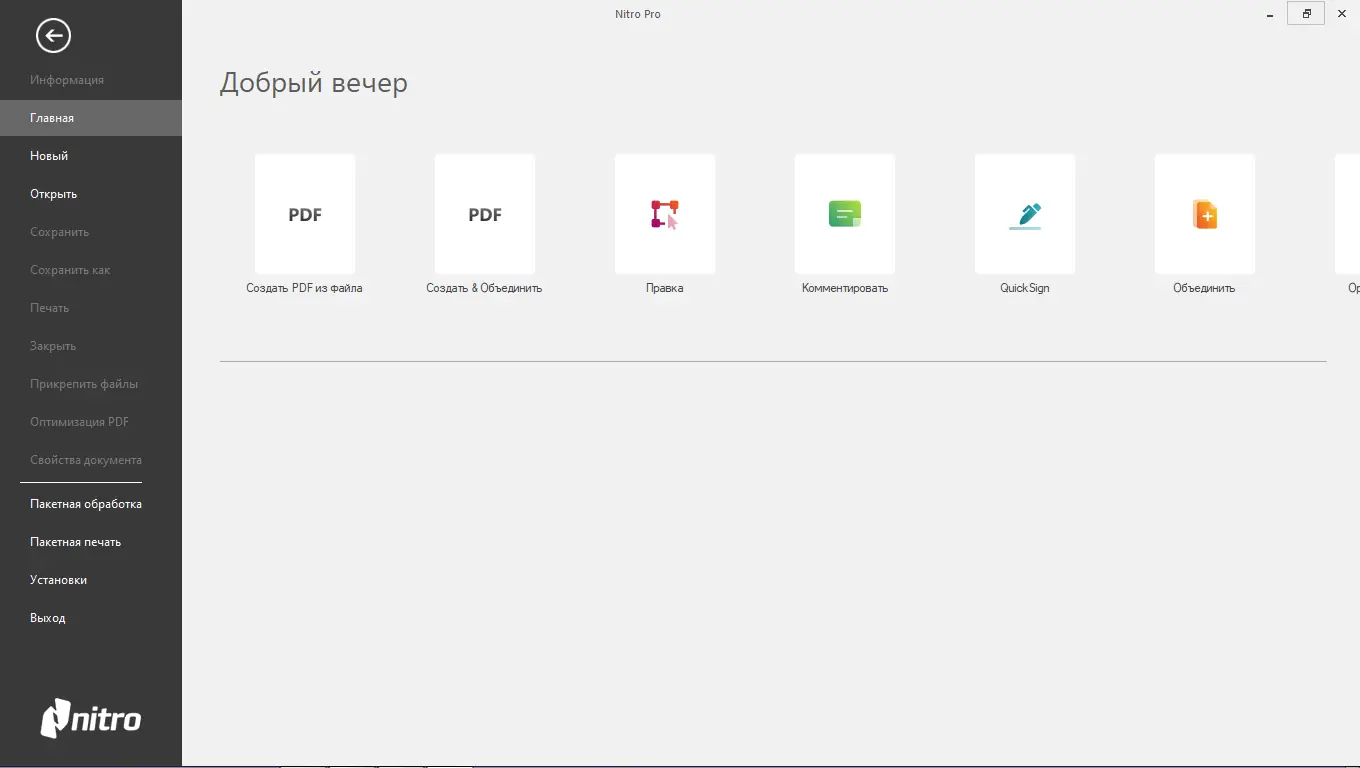 Интерфейс Nitro Pro выполнен в стиле Microsoft Office 2007, что обеспечивает интуитивную навигацию и снижает время адаптации.