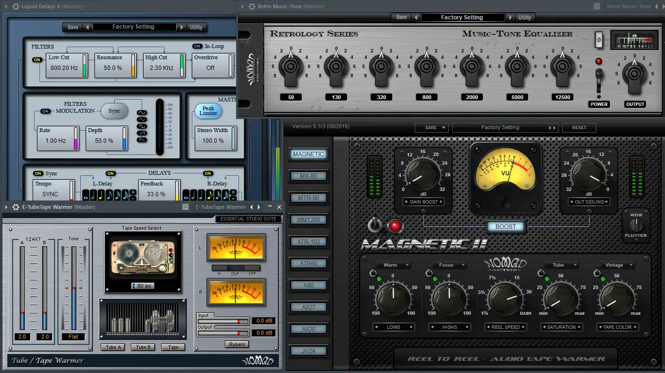 - Liquid Bundle 2 включает широкий спектр цифровых эффектов, от модуляций до задержек и пространственных обработок.