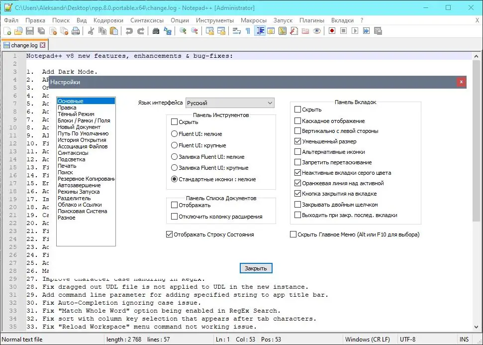 Notepad++ сочетает в себе простоту интерфейса и богатство инструментов, необходимых для эффективной работы с текстом и кодом.