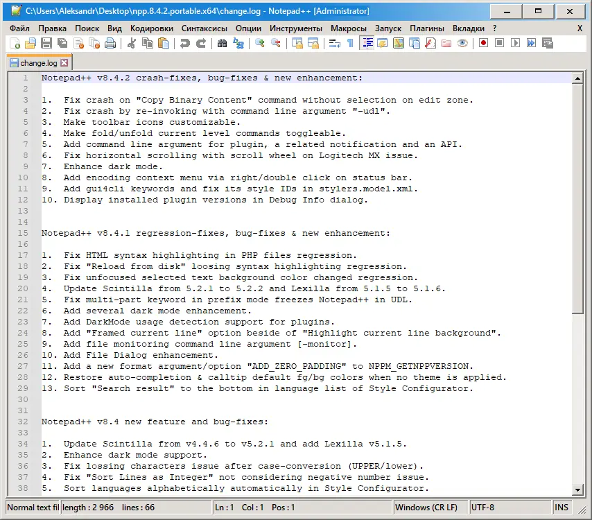 Программа доступна для бесплатного скачивания в различных версиях, включая установочную и портативную. Портативная сборка позволяет запускать редактор с флеш-накопителя без необходимости инсталляции. Все официальные архивы снабжены контрольными хэшами, что гарантирует подлинность и целостность файлов. Редактор поддерживает русский язык интерфейса и совместим с современными версиями Windows, включая 11-ю и 10-ю. Обновления выходят регулярно, включая исправления ошибок и новые возможности. Лицензия GPL позволяет свободно использовать, модифицировать и распространять программу. С каждым релизом улучшается стабильность, безопасность и удобство работы. Поддержка большого количества языков и форматов делает Notepad++ универсальным решением для повседневного редактирования текста и кода. Выделение скобок, заметки, масштабирование и динамическое изменение окон — всё это создаёт комфортную среду для работы.