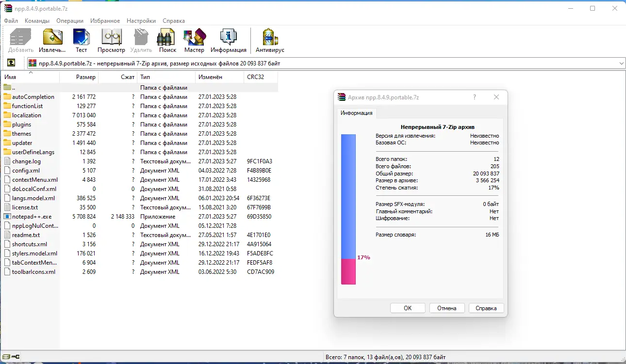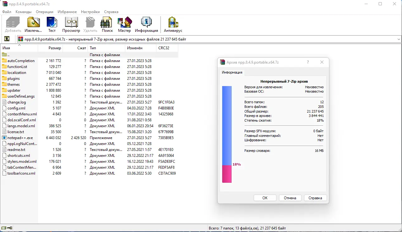 Notepad++ доступен для бесплатного скачивания в различных версиях, включая установочную и портативную. Портативная версия идеально подходит для использования на разных компьютерах без необходимости инсталляции. Все файлы снабжены контрольными хэшами (CRC-32, MD5, SHA-1, SHA-256), что гарантирует их целостность и подлинность. Программа поддерживает современные версии Windows, включая 7, 8.1, 10 и 11 разрядности x86 и x64. Русский язык интерфейса включён по умолчанию, что упрощает использование для русскоязычных пользователей.