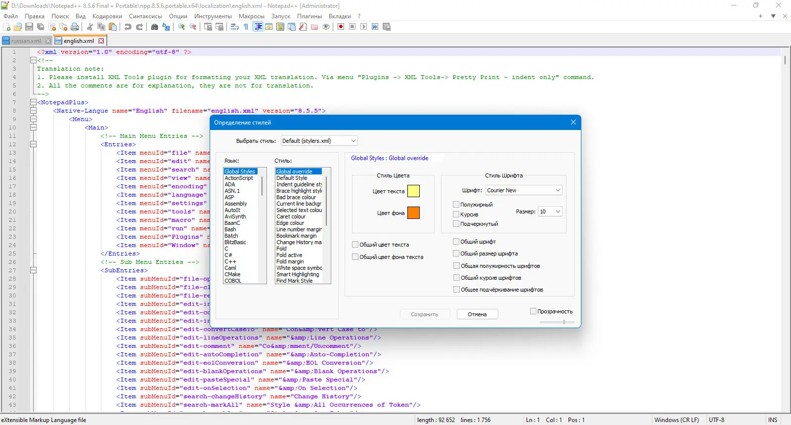 Работа с Notepad++