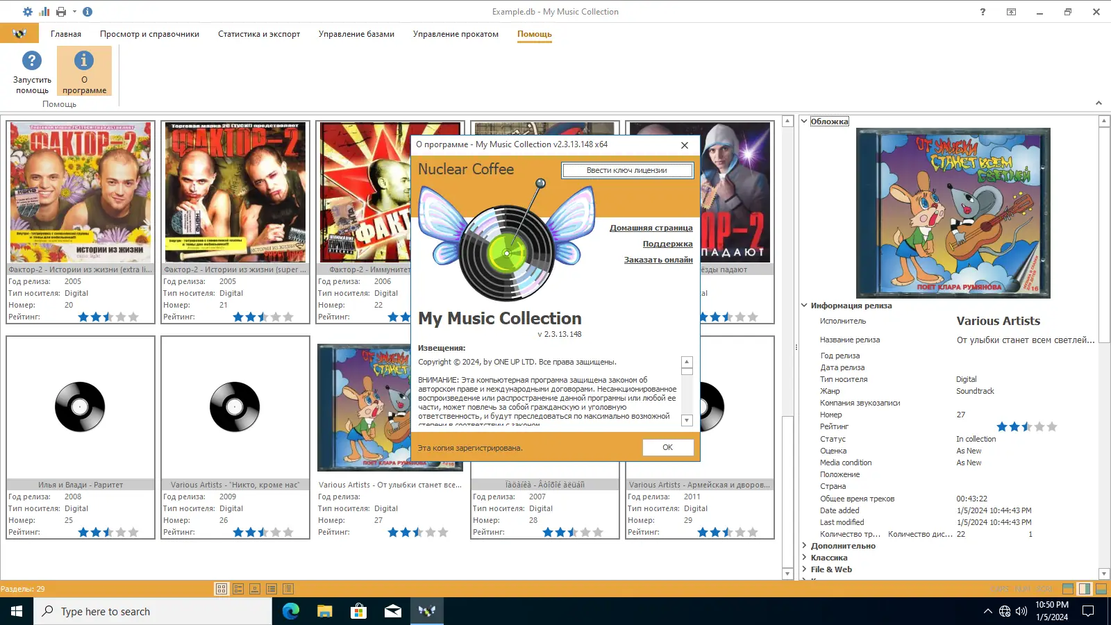 Nucleer Coffee — My Music Collection — это универсальное приложение для систематизации музыкальных коллекций любого формата: от физических носителей до цифровых файлов. Программа автоматически извлекает данные из онлайн-баз, поддерживает импорт из сторонних сервисов и позволяет вести учёт заёмных дисков, создавать списки желаний и экспортировать каталог в различные форматы.