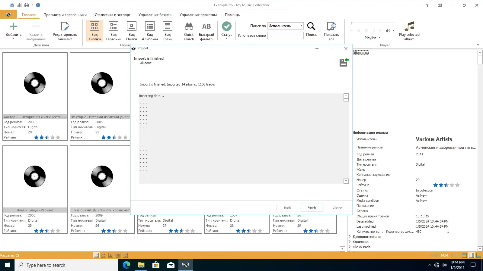 - Доступен импорт данных из сторонних приложений, включая Catraxx, MusicLabel и Collectorz Music Collector.