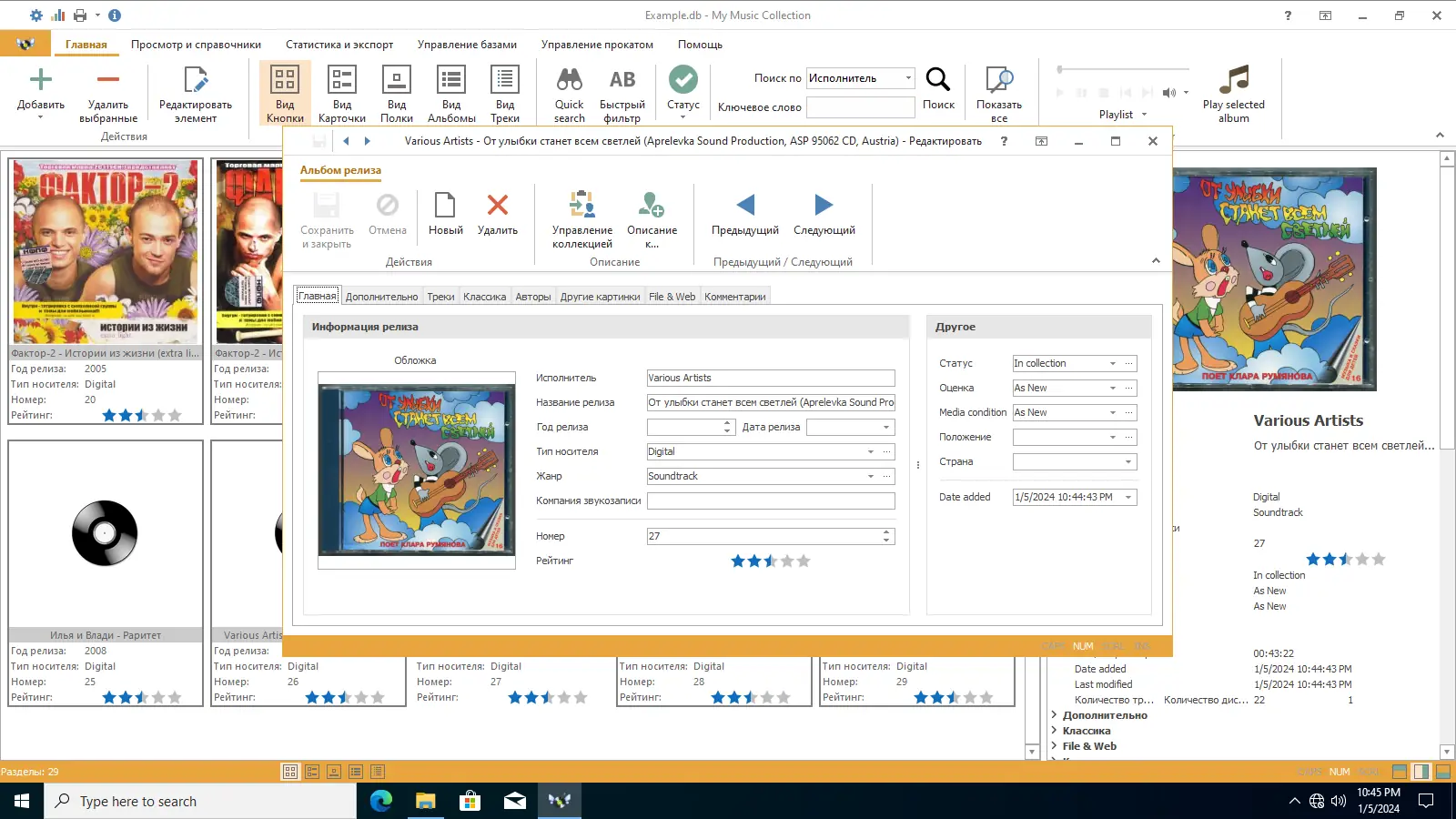 - Программа поддерживает добавление коллекций через вставку диска, сканирование штрих-кода или ручной ввод.