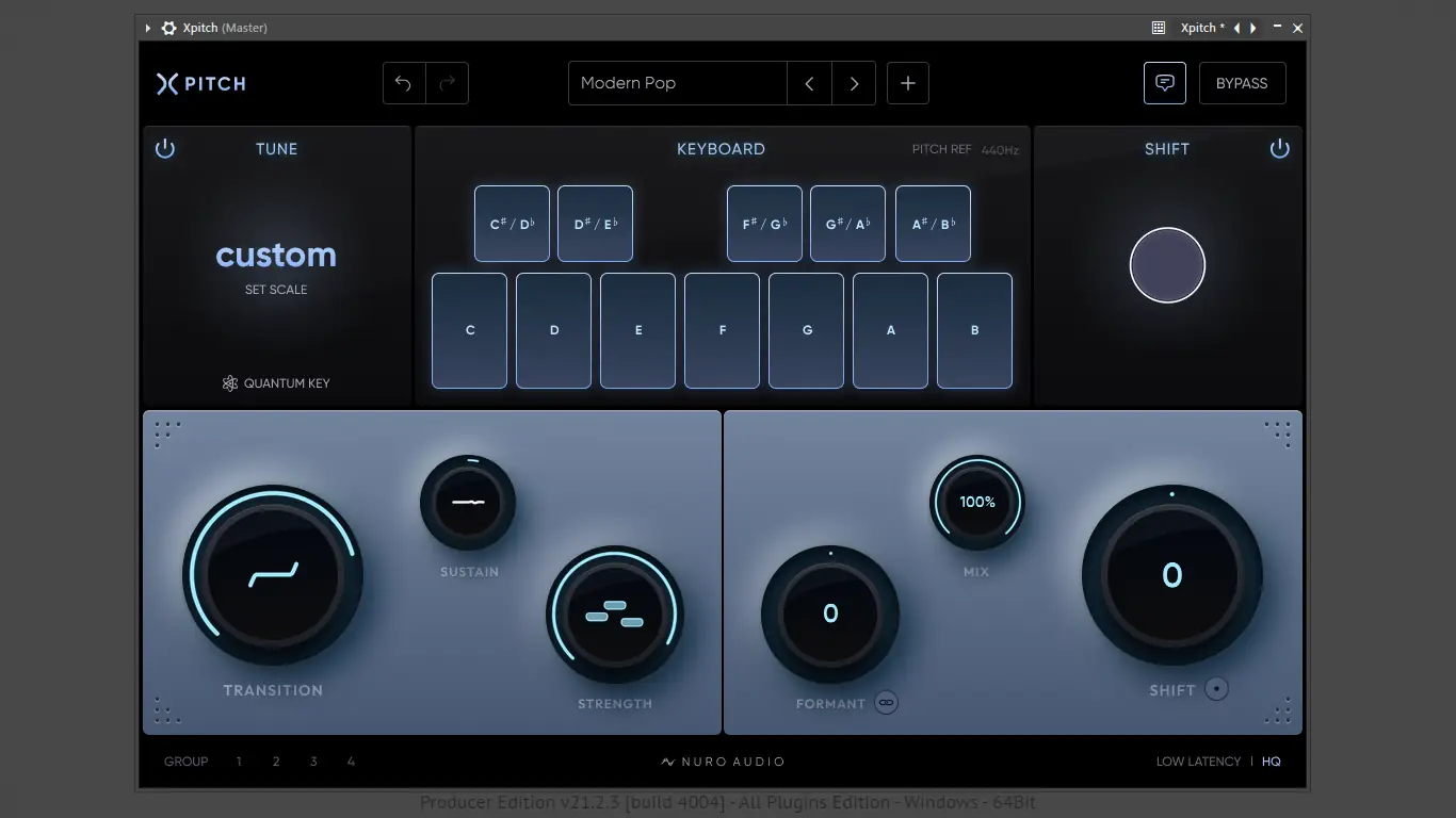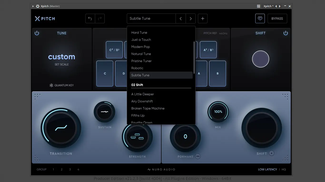 Плагин интегрируется в аудио хост через форматы VST, VST3 или AU, в зависимости от системы. После загрузки на трек, пользователь может регулировать параметры в реальном времени. Регулятор Transition отвечает за плавность перехода между нотами — медленные значения подходят для живого звучания, быстрые — для эффекта «робота». Параметр Sustain позволяет усилить или подавить вибрато и микротоны, сохраняя или устраняя динамику исполнения. Strength определяет степень коррекции: от минимальной корректировки до абсолютной привязки к заданной высоте. Для экспериментов доступен микс-регулятор, позволяющий смешивать оригинальный и обработанный сигнал.
