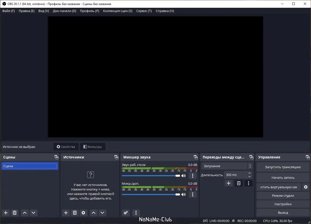 - Пользователь может создавать неограниченное количество сцен и настраивать источники в зависимости от задач — от демонстрации игр до проведения вебинаров.