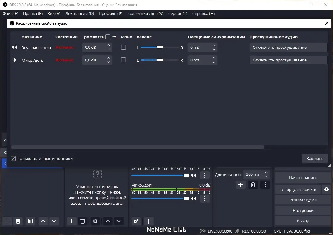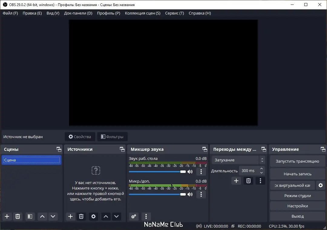 - Возможность использовать неограниченное количество сцен и источников делает настройку максимально гибкой.