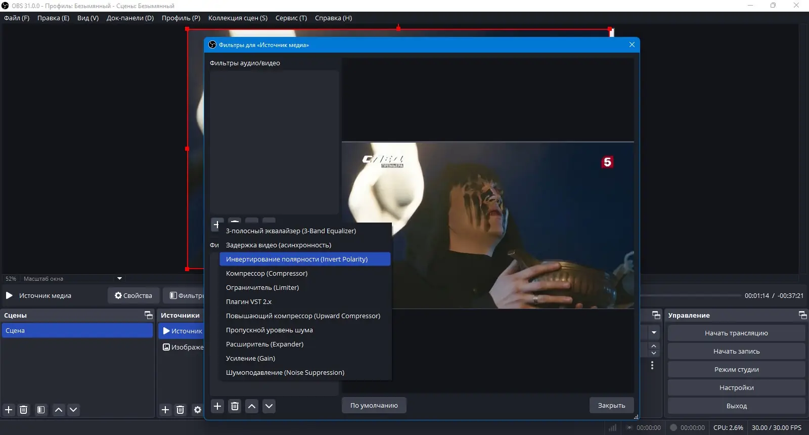 - Возможность создавать и переключать неограниченное количество сцен и источников.