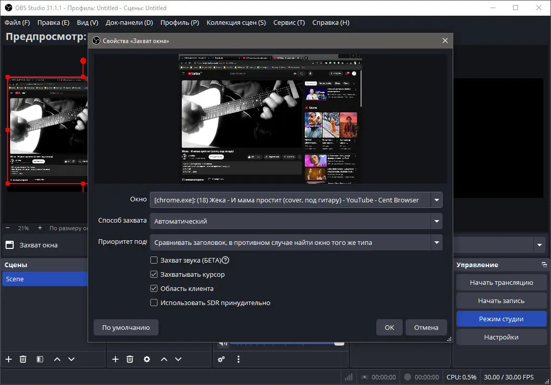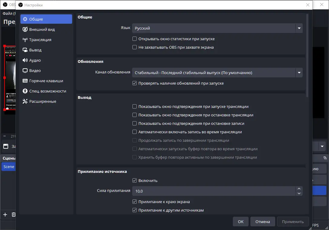 - Возможность создавать неограниченное количество сцен и настраивать источники под любые задачи.