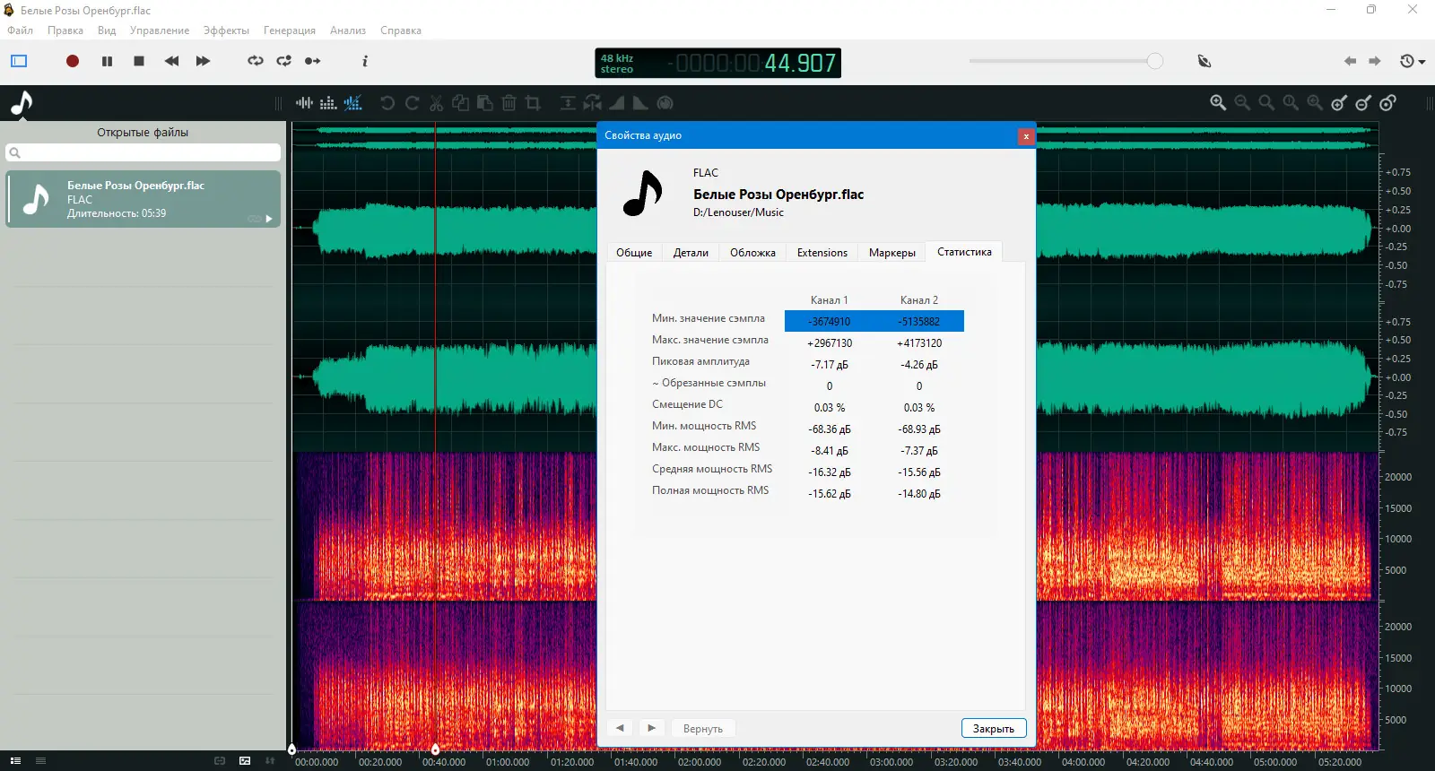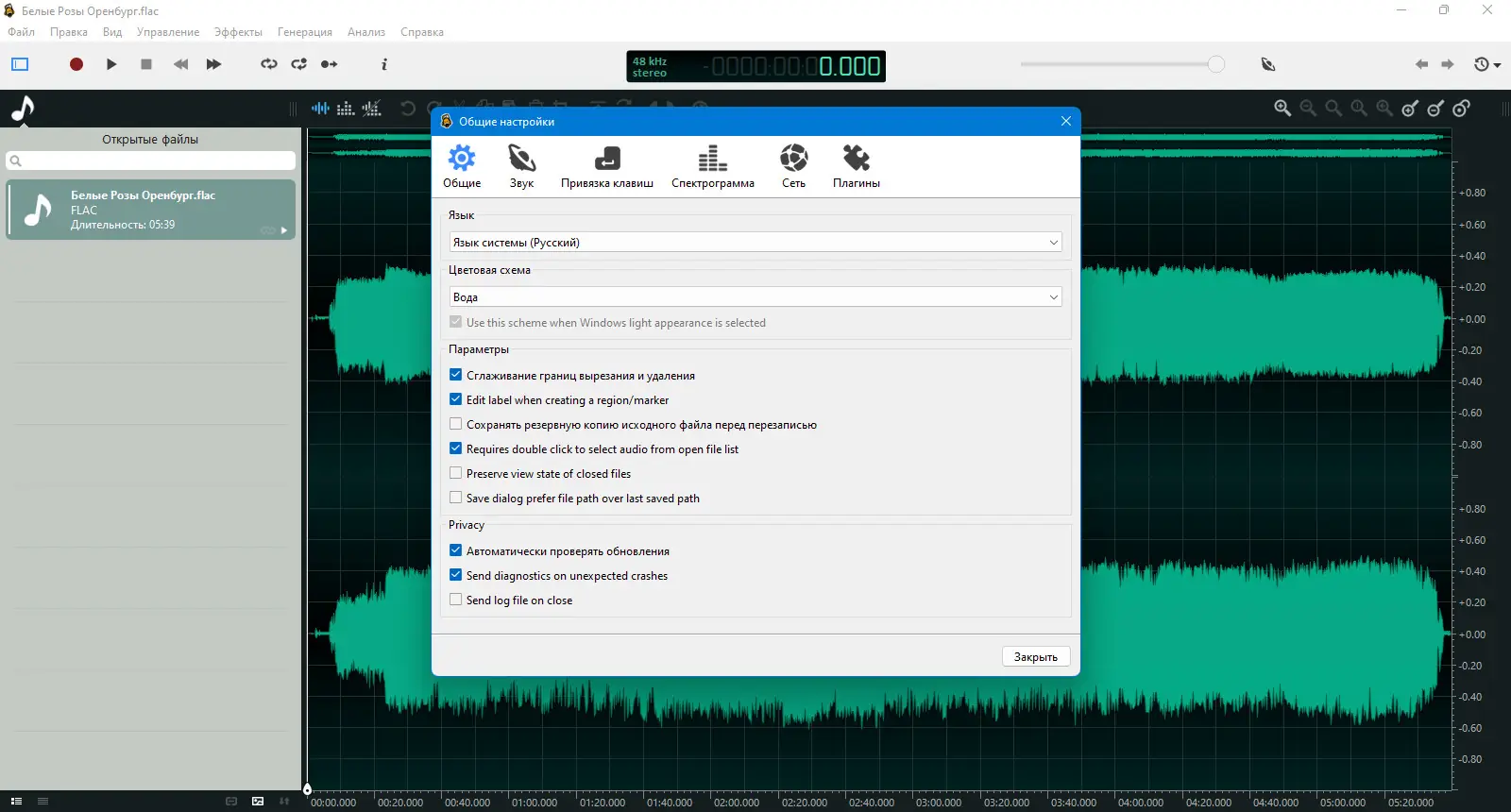 Работа с Ocenaudio