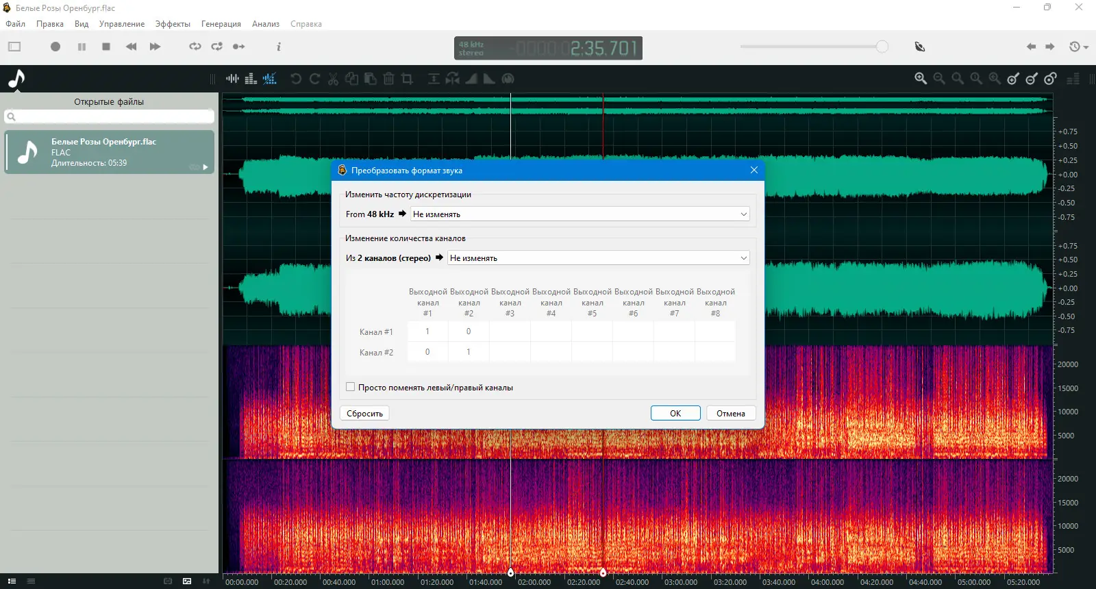 Работа с Ocenaudio