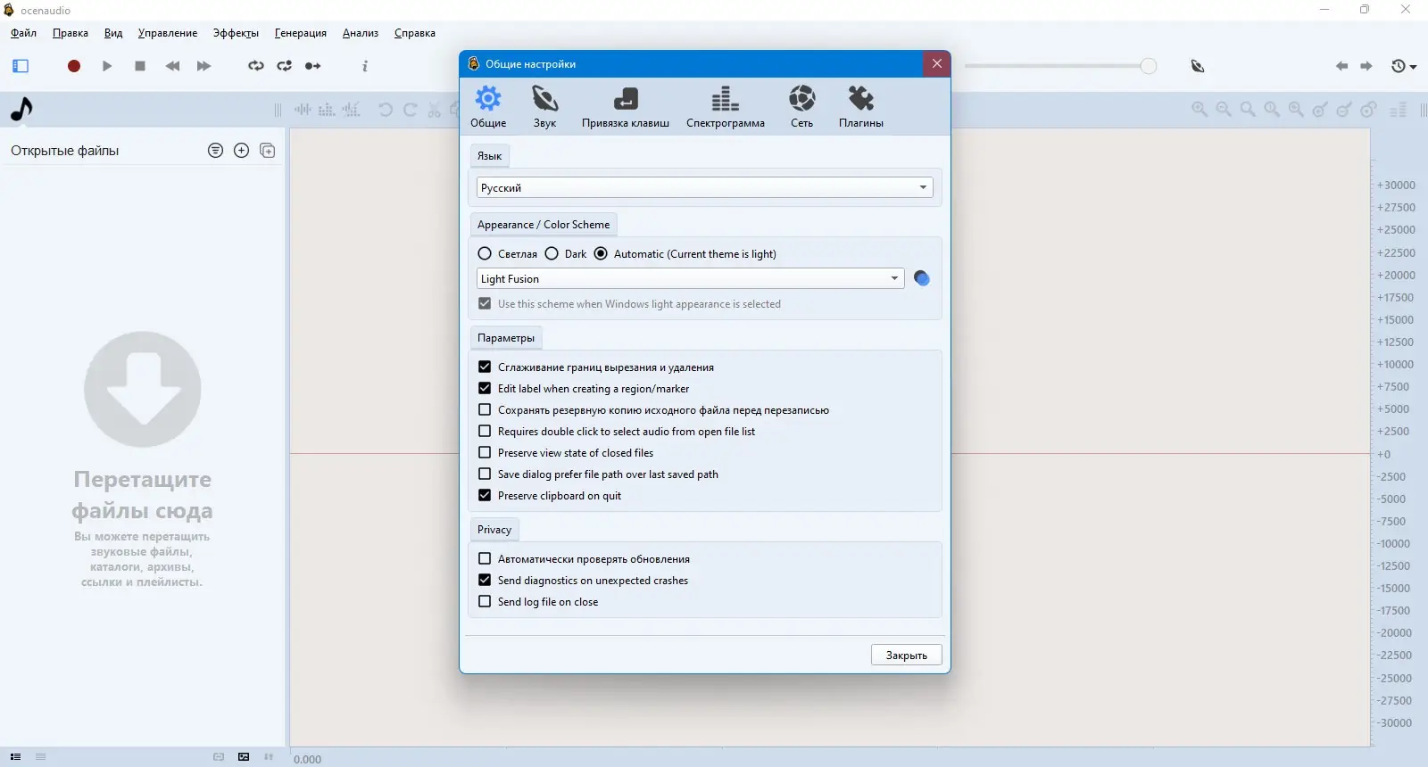 Работа с Ocenaudio