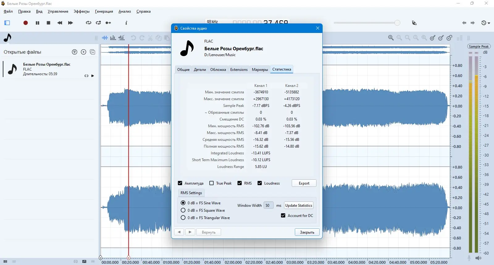 Работа с Ocenaudio