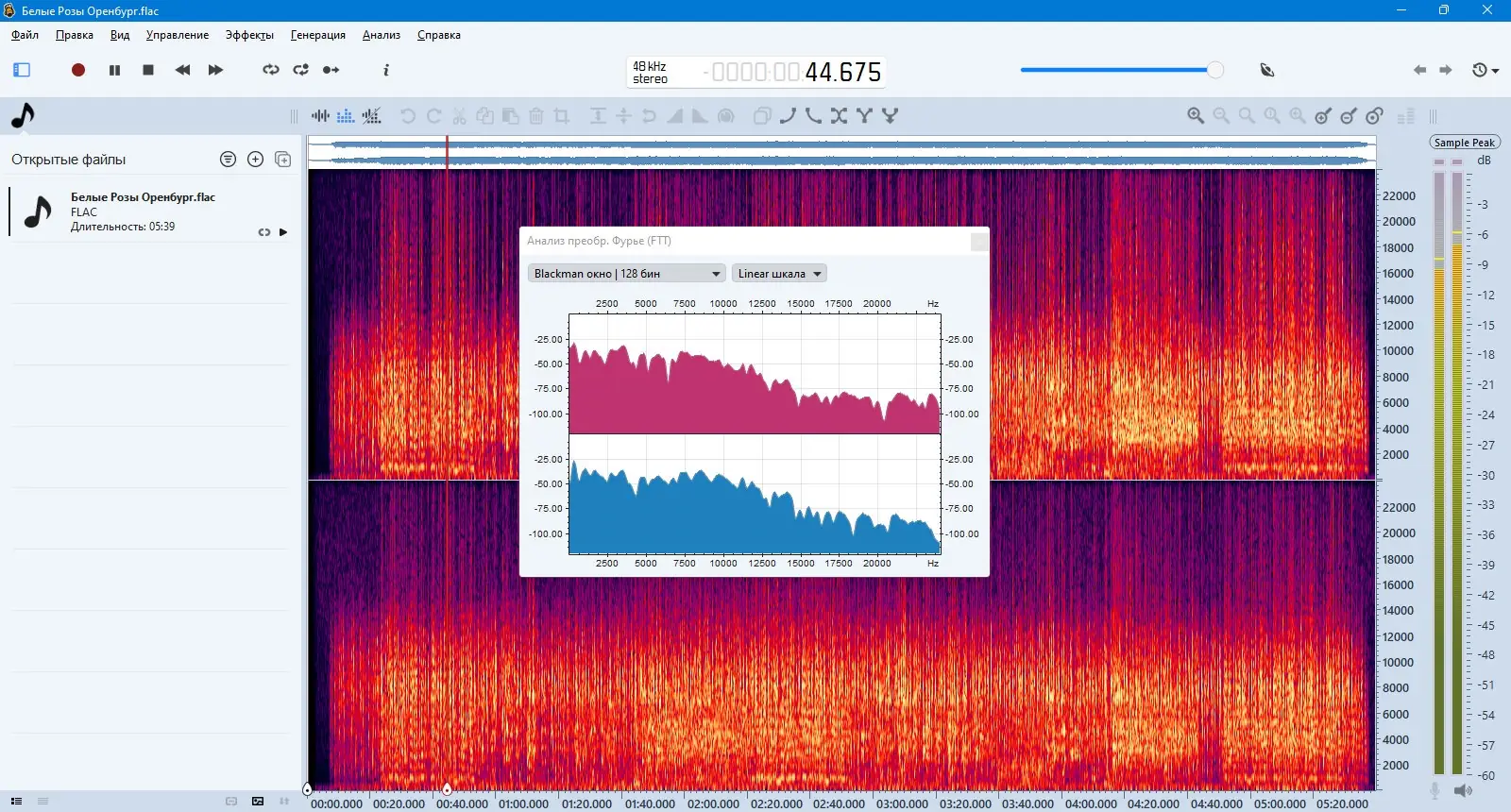 Интерфейс Ocenaudio прост и ориентирован на быструю работу. После открытия аудиофайла вы можете сразу приступать к редактированию: выделять фрагменты, копировать, вставлять, удалять или применять эффекты. Режим множественного выбора позволяет одновременно работать с разрозненными участками дорожки — например, убрать тишину между репликами в подкасте. Все изменения можно прослушать в режиме реального времени, что особенно полезно при настройке эквалайзера или компрессии. Спектрограмма помогает находить шумы, щелчки или нежелательные частоты визуально.