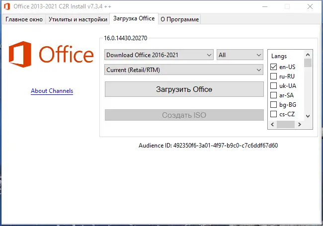 - Позволяет скачать microsoft office с выбором версии, языка и разрядности