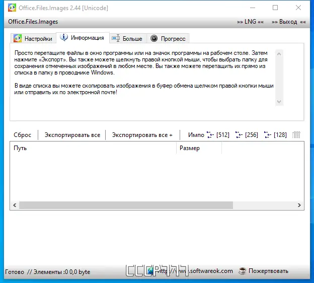 Office.Files.Images сочетает в себе производительность, простоту и функциональность. Низкое потребление ресурсов процессора позволяет запускать программу на слабых компьютерах без потери отзывчивости системы. Портативная версия не требует установки и может работать с флеш-накопителя, что удобно для мобильных пользователей. Многоязычный интерфейс включает поддержку русского языка, что упрощает освоение.