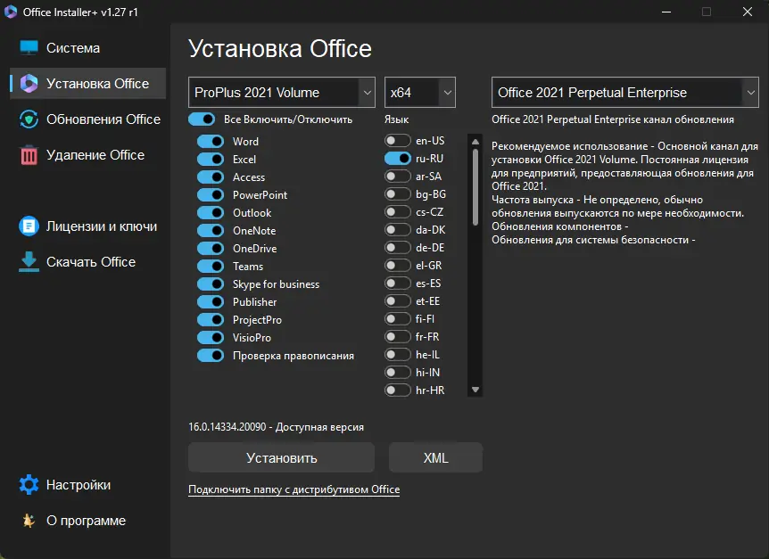 Office Installer — это удобное решение для установки Microsoft Office 2016–2024 через Click-to-Run с поддержкой offline-режима. Программа позволяет скачивать дистрибутивы, создавать ISO-образы и управлять лицензиями. Подходит для системных администраторов и пользователей, которым нужна гибкая настройка установки офисного пакета.
