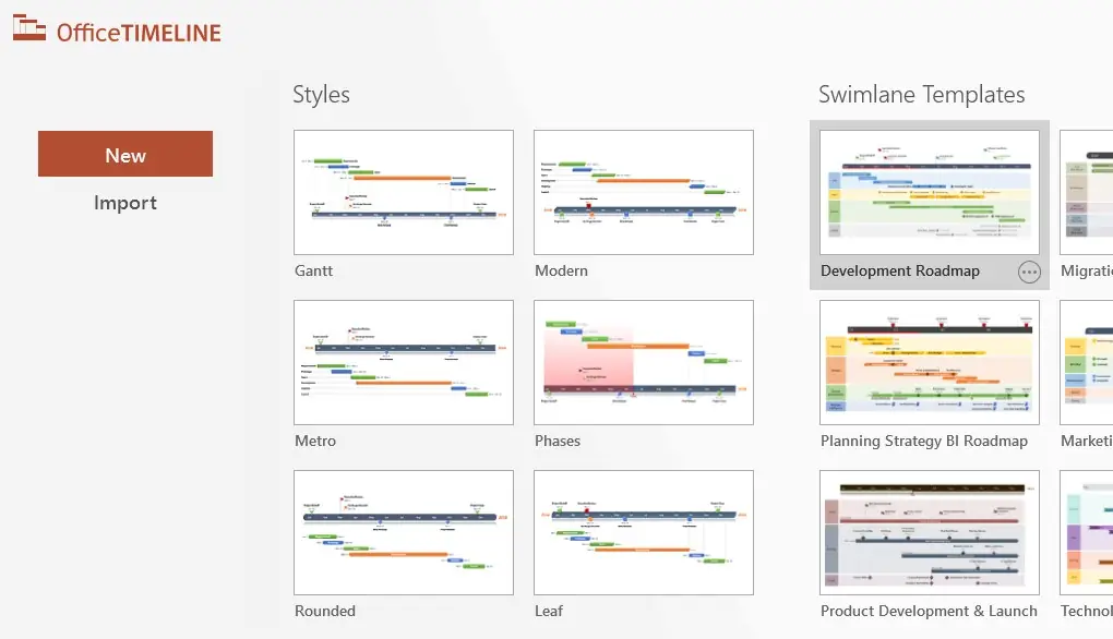 Office Timeline — это надстройка для PowerPoint, позволяющая быстро создавать профессиональные временные шкалы и диаграммы Ганта. Программа интегрируется в интерфейс Microsoft PowerPoint, обеспечивая удобный доступ к шаблонам, настройкам стиля и автоматизированному формированию графиков. Работа с данными упрощена благодаря интуитивному мастеру, который проводит пользователя через все этапы создания визуализации проекта.