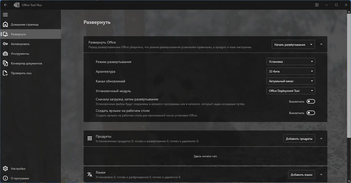 Работа с Office Tool Plus