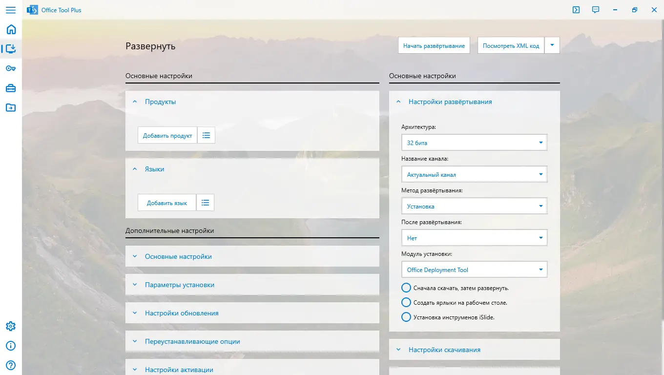 Office Tool Plus — это мощный инструмент для настройки, установки и управления пакетом Microsoft Office. Программа предоставляет расширенные возможности по настройке компонентов, языков, каналов обновления и активации, позволяя быстро развернуть офисный пакет в соответствии с требованиями пользователя. С её помощью можно легко модифицировать уже установленную версию, удалить ненужные элементы или подготовить установочный образ для массового развёртывания. Утилита не содержит вирусов и не нарушает лицензионные соглашения, действуя исключительно как помощник в управлении официальным программным обеспечением.