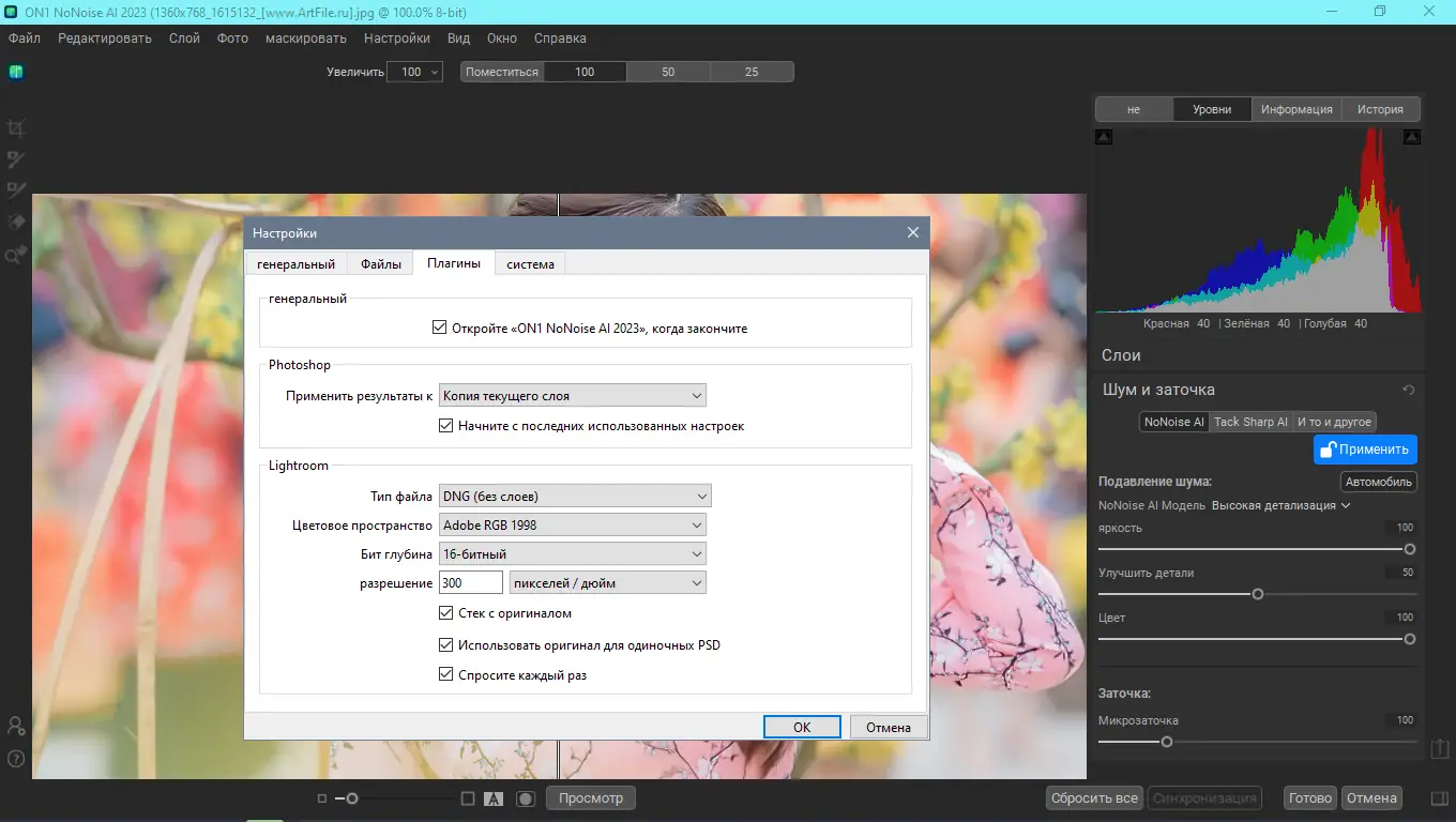 - Удаление яркостного и цветового шума с сохранением текстур и мелких элементов
