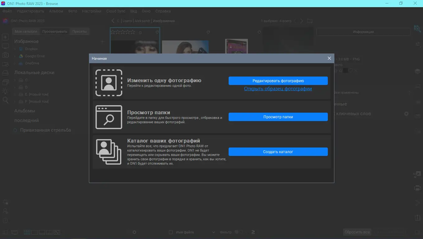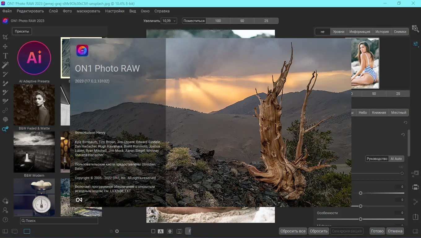 Работа с ON1 Photo RAW