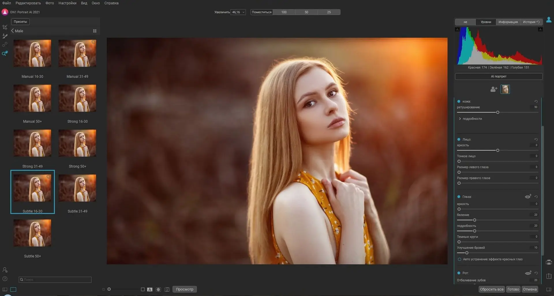 Программа сочетает скорость автоматизации и точность ручной настройки, что делает её универсальным инструментом для обработки портретов.