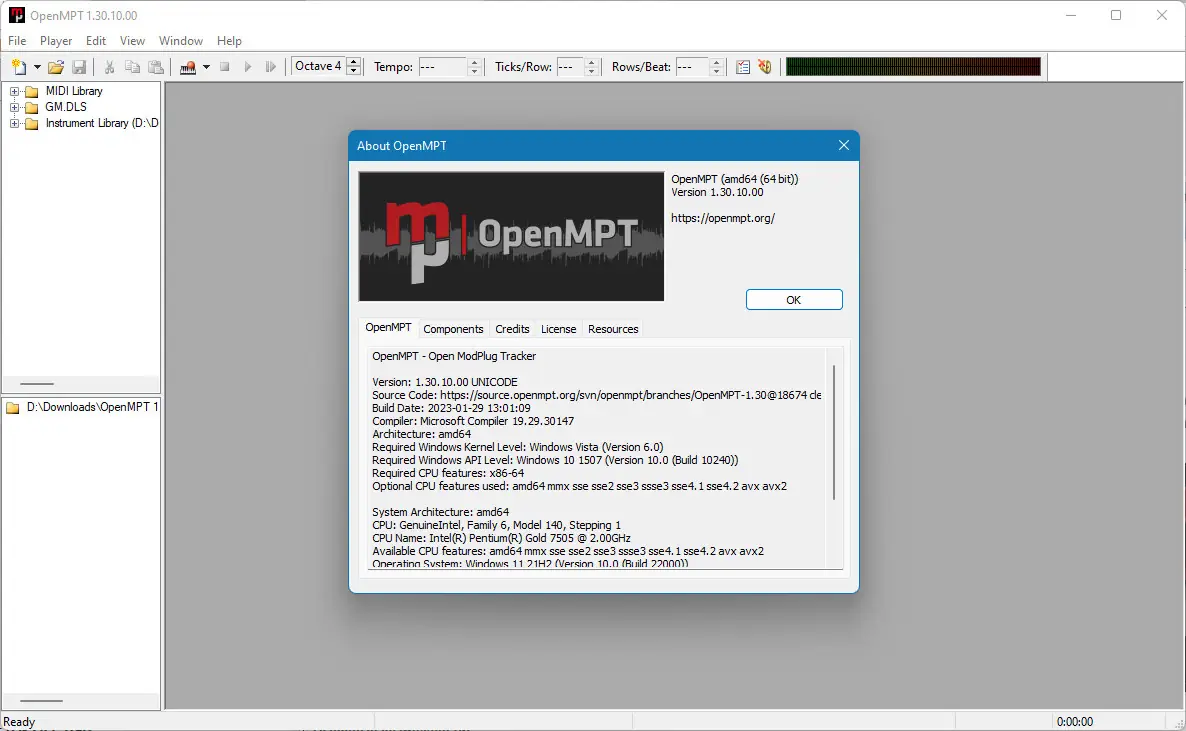 OpenMPT — это современная версия классического трекера, изначально созданного Оливье Лапиком. Программа активно развивается как проект с открытым исходным кодом и предназначена для создания музыки в модульном формате. Она сочетает в себе простоту классических интерфейсов и передовые технологии современного звукового производства. OpenMPT поддерживает как традиционные подходы к композиции, так и сложные аранжировки с использованием виртуальных инструментов и эффектов.