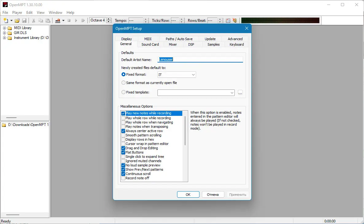 - Импорт широкого спектра форматов модулей, включая IT, XM, MOD, S3M и другие, что делает OpenMPT универсальным инструментом для работы с ретро- и современной модульной музыкой.
