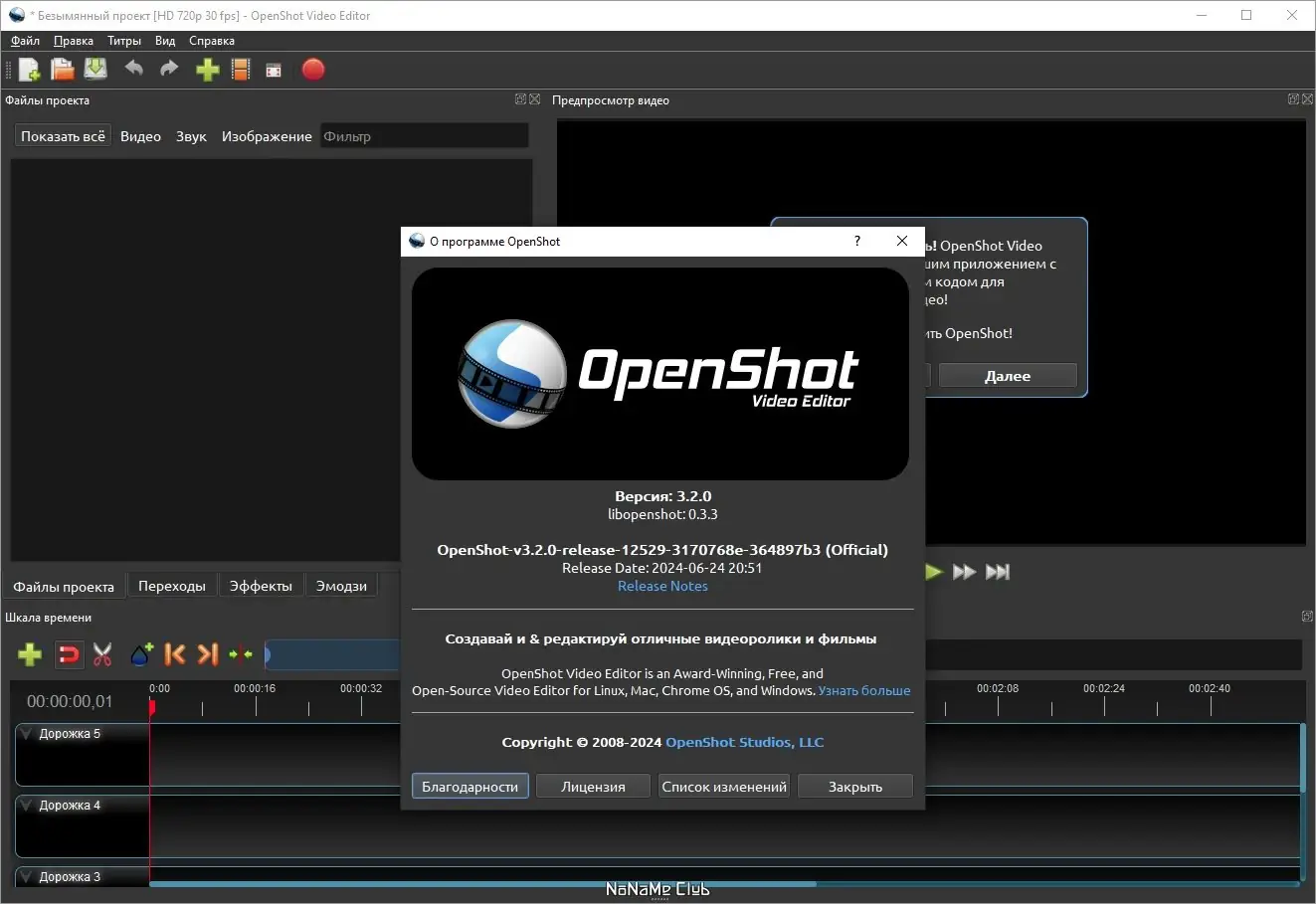 OpenShot Video Editor — это свободный видеоредактор с открытым исходным кодом, предназначенный для создания и обработки видеоматериалов высокого качества. Программа подходит как новичкам, так и опытным пользователям, предоставляя интуитивный интерфейс и широкий набор инструментов для монтажа. С её помощью можно редактировать видео, добавлять анимированные титры, применять эффекты и экспортировать результат в популярные форматы.