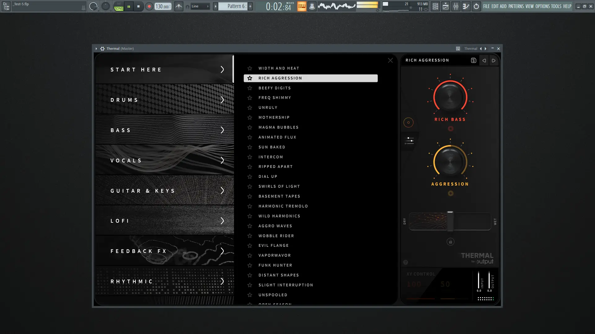 - Thermal предлагает многоступенчатый движок для тонкой настройки искажений и насыщения сигнала.