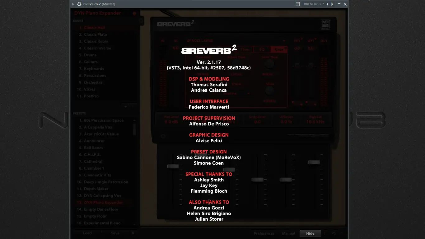 BREVERB 2 разработан для тех, кто ценит аутентичное звучание аналоговых ревербераторов, но требует гибкости цифрового инструмента. Плагин моделирует не только акустические характеристики таких устройств, как Lexicon 224 и 480, но и электронные цепи преобразования сигнала — от аналогово-цифрового до цифро-аналогового. Это обеспечивает полное соответствие тону оригинальных аппаратов, включая естественную теплоту и глубину. Инженеры Overloud проанализировали предпочтения ведущих звукорежиссёров, чтобы точно воссоздать более 50 объёмных пространств, подходящих под разные стили и цели.