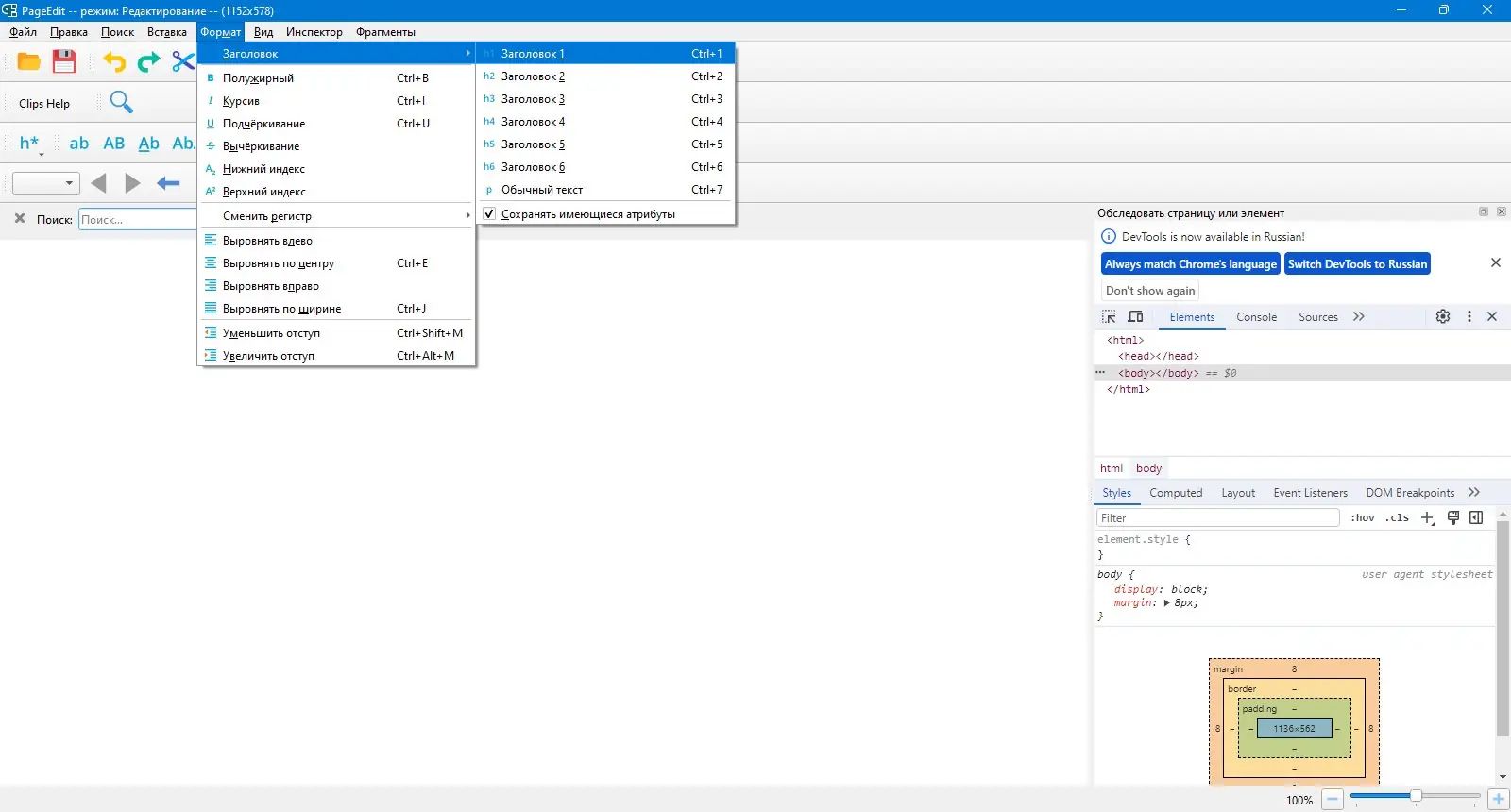 PageEdit сочетает в себе простоту визуального редактора и мощь инструмента для точного форматирования контента.