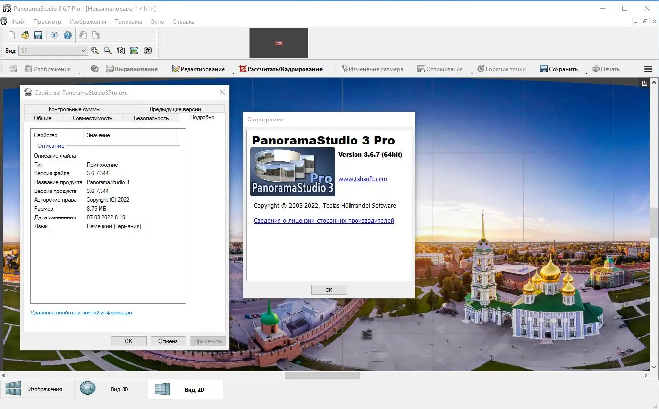 PanoramaStudio разработана немецкими специалистами и предназначена для создания панорам различного типа — от плоских до сферических. Программа работает с широким спектром форматов, включая JPG, TIFF, PSD, PNG и множество RAW-файлов, что делает её универсальным инструментом в редактировании фотоизображений. Автоматическое определение параметров камеры по EXIF-данным позволяет быстро начать обработку без дополнительной настройки оборудования.