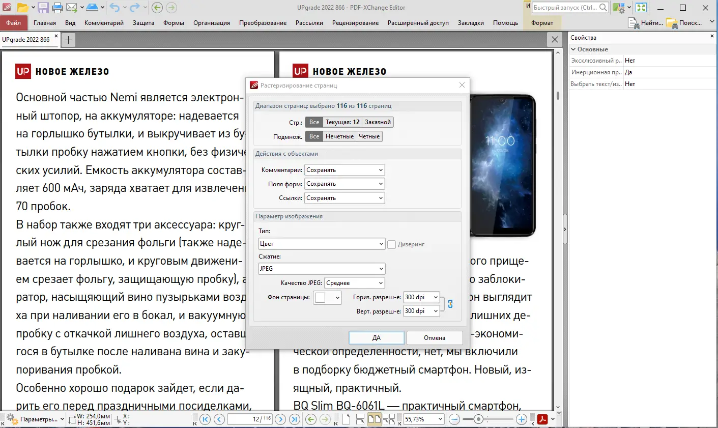 - Возможность экспорта страниц в графические форматы