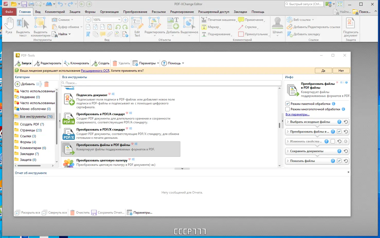 PDF-XChange Pro объединяет в себе мощь трёх программ, разработанных компанией Tracker Software. Основу пакета составляет PDF-XChange Editor Plus — продвинутый редактор, способный открывать, изменять и сохранять PDF-документы с поддержкой текста, изображений и аннотаций. Второй компонент, PDF-Tools, обеспечивает расширенные возможности по конвертации файлов различных форматов в PDF и обратно, включая обработку пакетных заданий. Третий элемент — PDF-XChange Standard — представляет собой виртуальный принтер, который создаёт PDF-файлы из любого приложения, поддерживающего печать. Работа с документами становится гибкой и эффективной, особенно при необходимости частого экспорта, редактирования или архивирования.