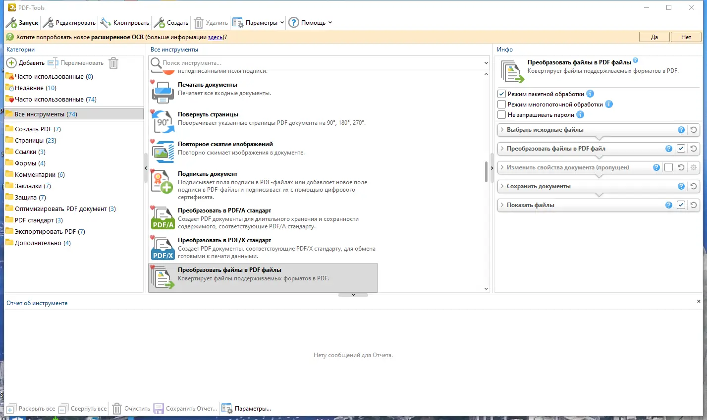 - Инструмент PDF-Tools обеспечивает продвинутые возможности по созданию и модификации PDF-файлов из других форматов.