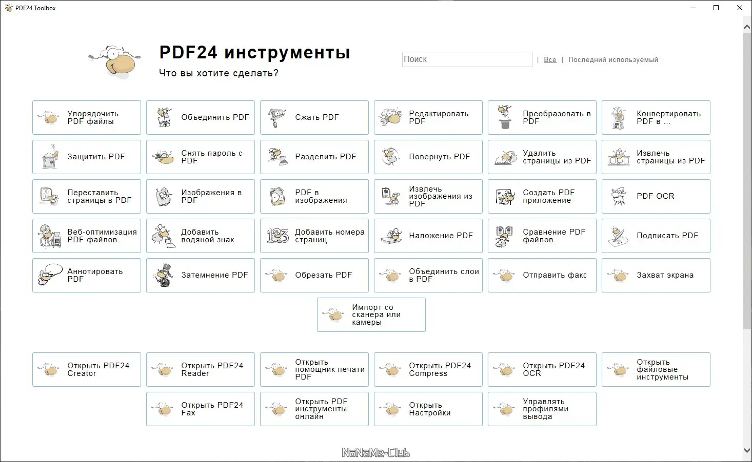 PDF24 — это бесплатная программа для создания, редактирования и конвертации PDF-документов с широким набором инструментов. Она работает на базе виртуального принтера и позволяет преобразовывать файлы из множества форматов, включая изображения и текстовые документы. Программа поддерживает объединение, разделение, защиту паролем и отправку файлов, а также включает встроенные средства для захвата экрана и настройки параметров вывода.