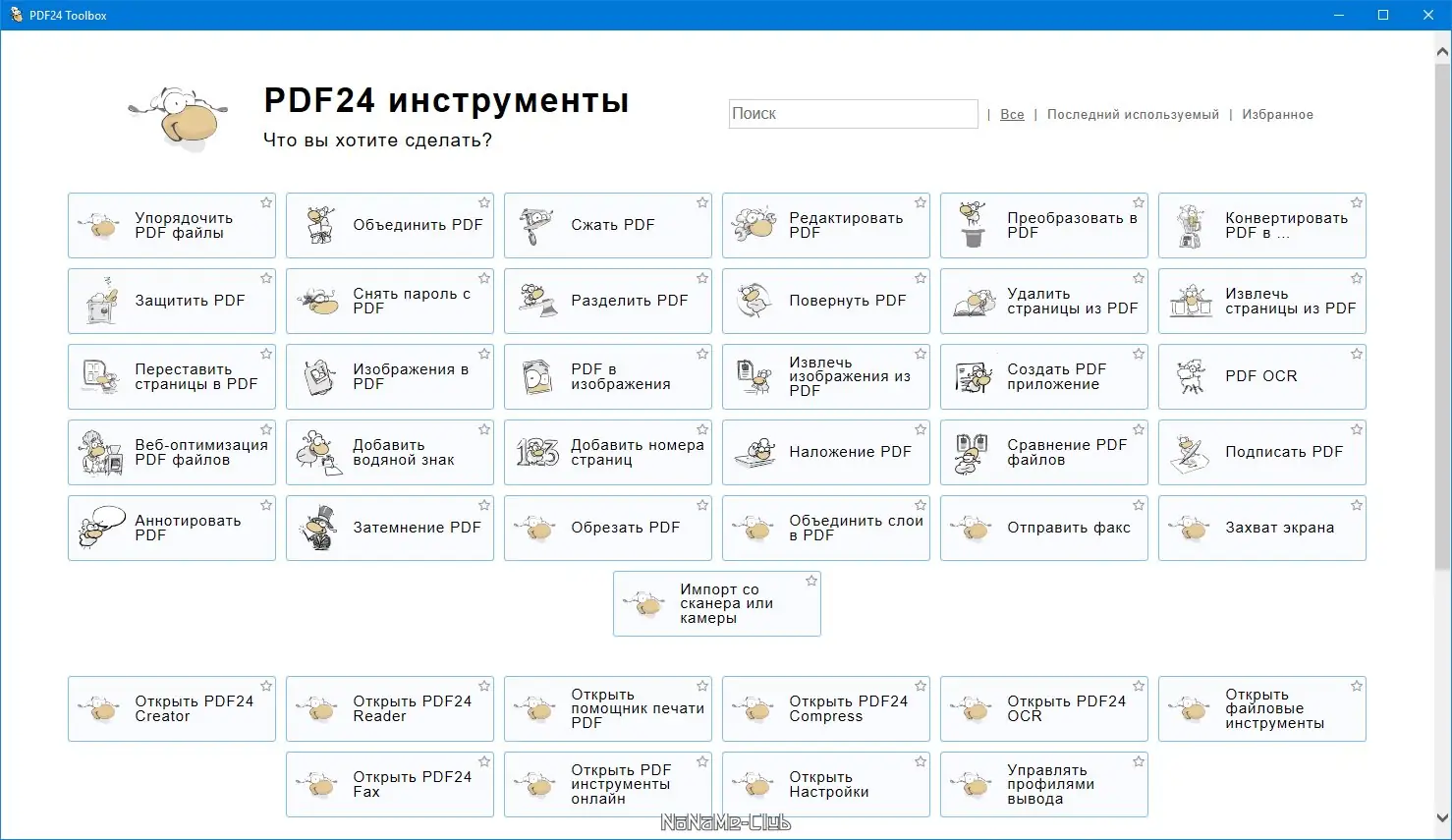 - Наличие встроенных инструментов: редактор, конвертер, скриншотер, объединение файлов