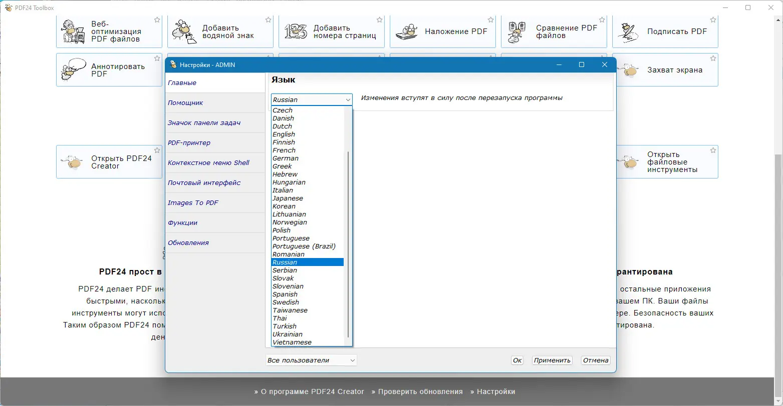 Работа с PDF24 Creator