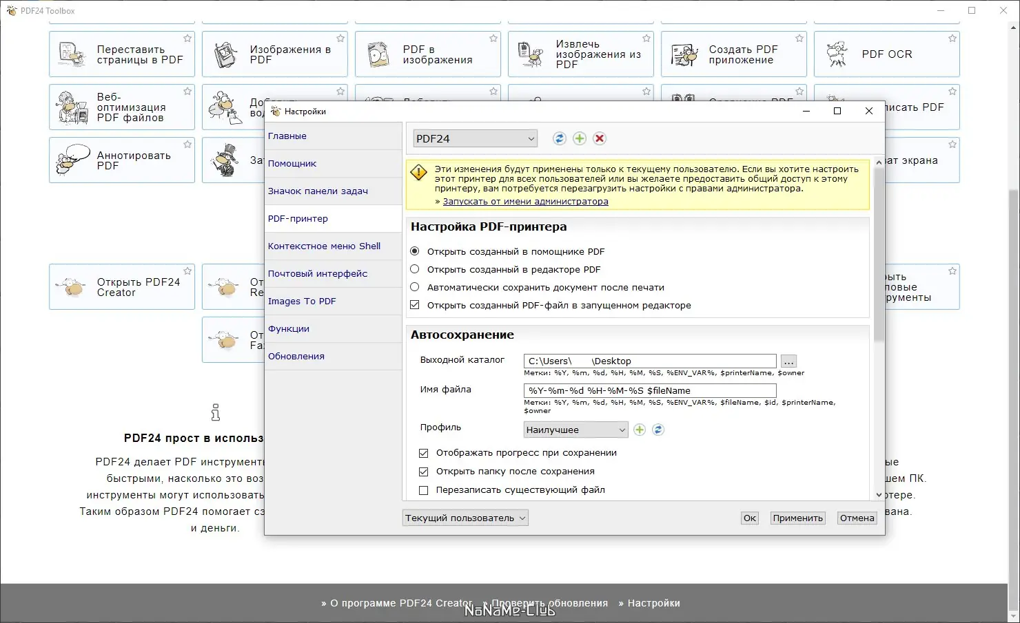 PDF24 Creator предлагает широкий набор функций при полном отсутствии платной подписки или скрытых платежей. Программа стабильно работает, не замедляет систему и поддерживает автоматизацию задач. Однако, как и у любого бесплатного решения, есть ограничения. Например, интерфейс хотя и переведён, может содержать отдельные элементы на английском языке при определённых настройках. Также отсутствуют продвинутые функции, такие как распознавание текста или редактирование содержимого PDF, что делает её непригодной для сложных редакционных задач. Тем не менее, для базовой работы с PDF инструмент остаётся одним из лучших в своём классе.